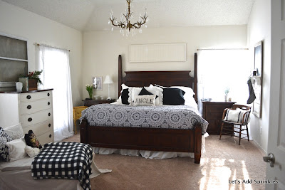 ReplyDeleteYour master bedroom looks beautiful! The black/white is so pretty. I agree a little bit of red would make the room pop! But then I love red!